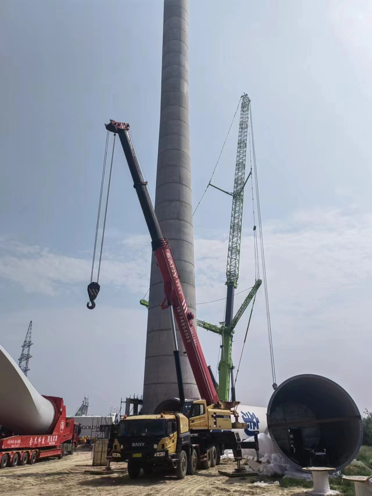 在山西省運城市臨猗縣的一個100兆瓦風電項目中,一臺由我司國六B發(fā)動機6R1500(OM473LA.6-57)驅(qū)動的2400噸全地面汽車起重機正在執(zhí)行安裝作業(yè)。